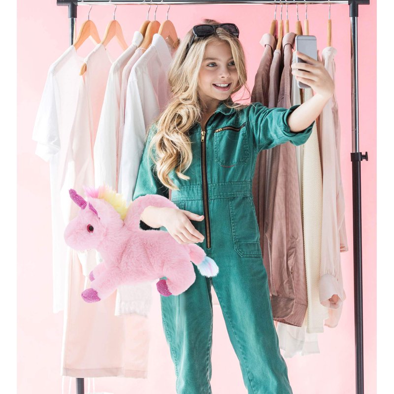 - THE UNICORN HANDBAG FOR KIDS COMES WITH UNIQUE DESIGN YOU WILL LOVE – Get your little one a cute handbag plush buddy to play anytime. The DolliBu Unicorn Stuffed Plush Handbag will make a child feel like carrying a unicorn pet. Kids who love plush will definitely enjoy having a fluffy unicorn plush as their bag. A cute kids bag to store accessories like toys & school supplies while being able to hug & cuddle with the stuffed unicorn toy plush.