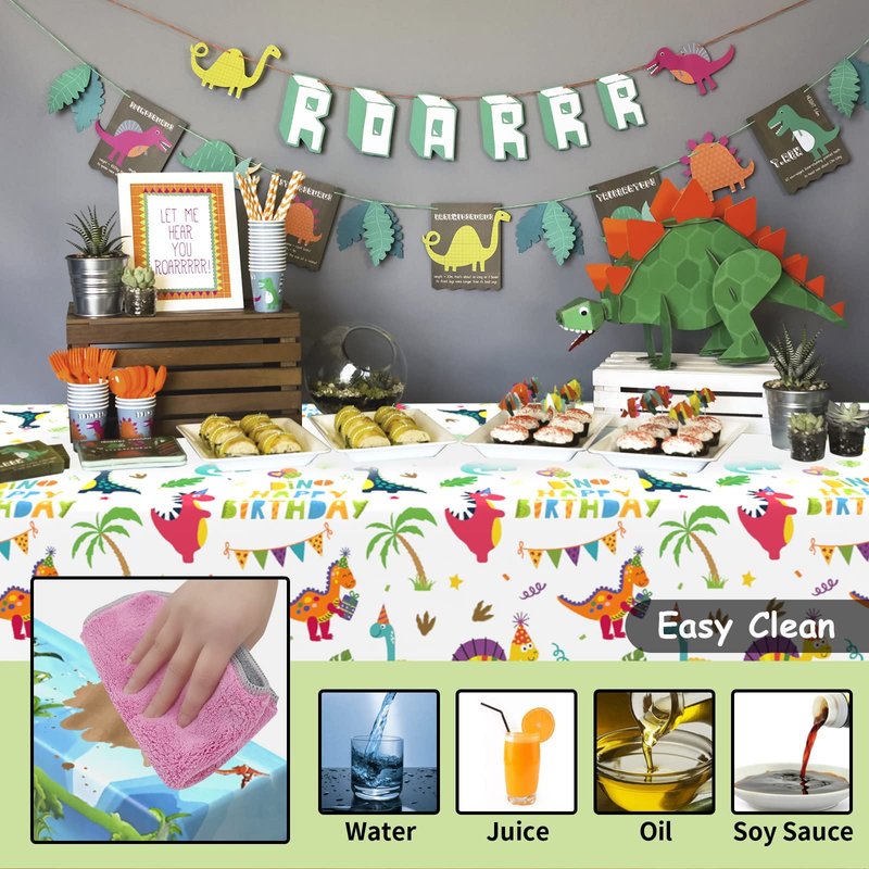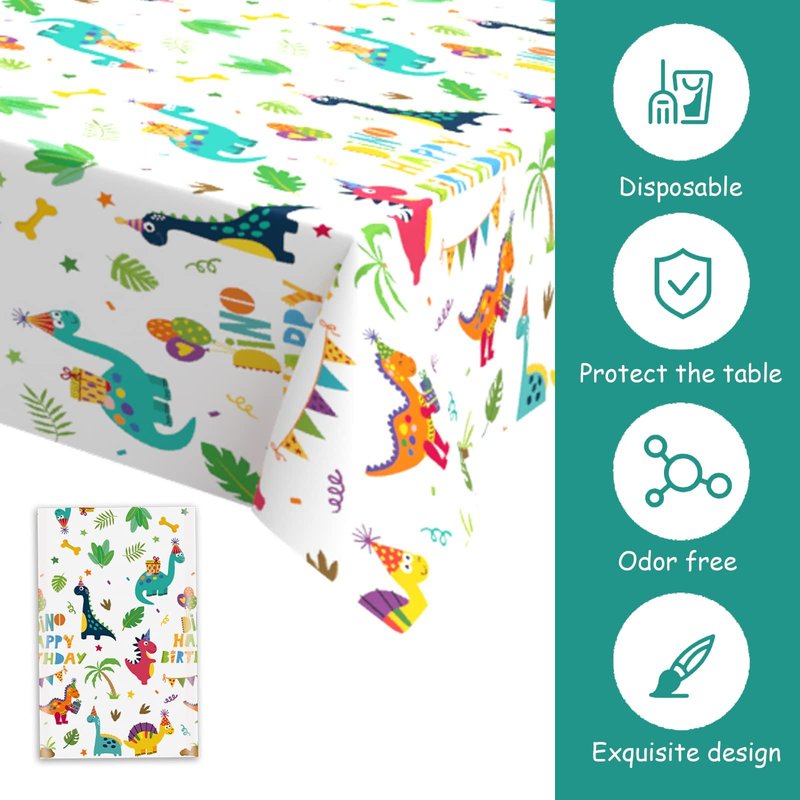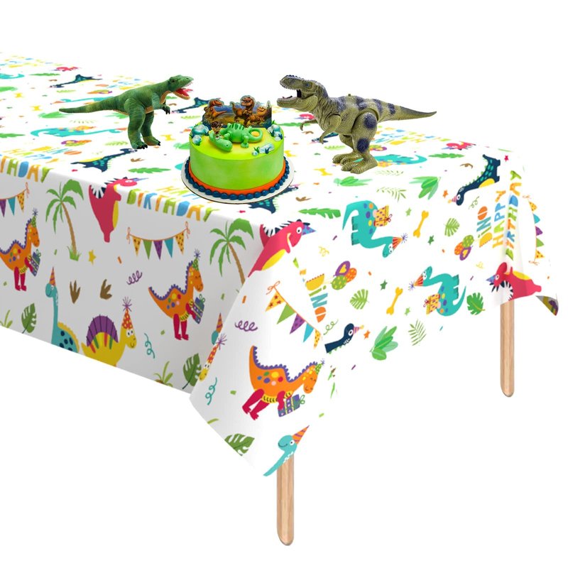 - UNIQUE DESIGN: Domgoge Happy birthday dinosaur tablecloth, gathers cute dinosaur patterns that children love; Domgoge plastic table cover, with eye-catching color and attractive pattern, which flatters the atmosphere of the dinosaur theme birthday party
