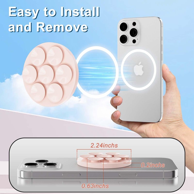 - Unmatched Suction Power: The upgraded for magsafe silicone phone mount thas 7 widened suction cups with a diameter of 16mm on the back, which can provide a stronger and more reliable support.The design of 7 independent magsafe suction cups makes the phone grip more firmly to a smooth and clean surface. so you don't have to worry about it falling off when you are taking beautiful photos