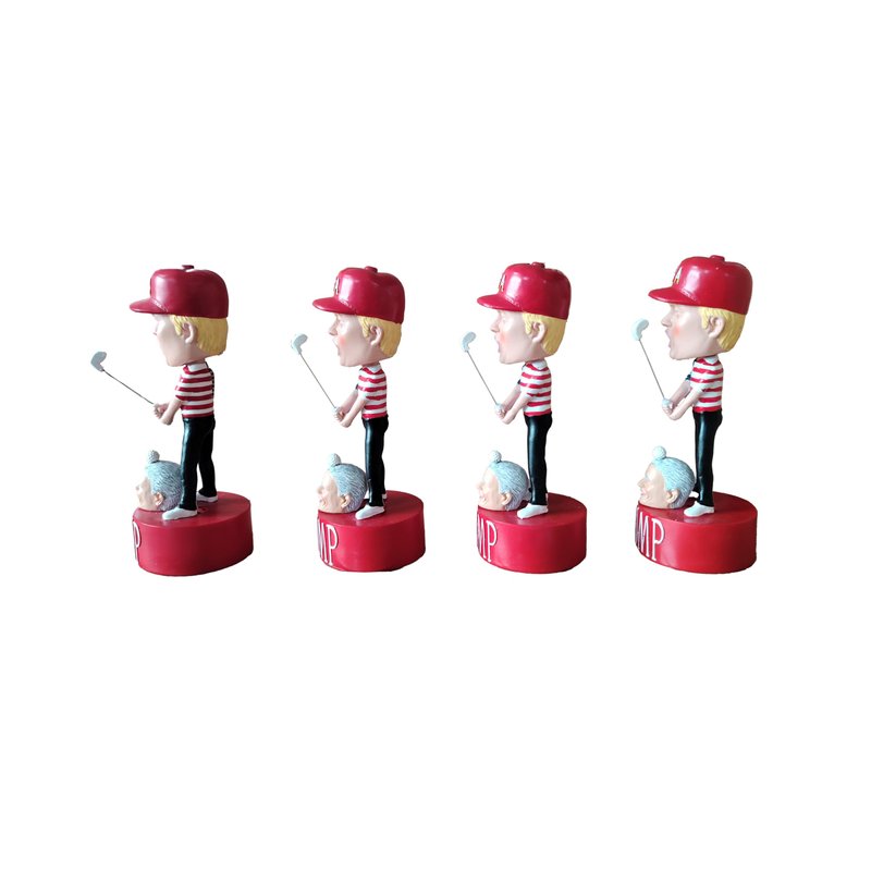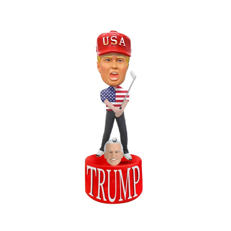 Introducing the Donald Trump Golfing Bobblehead - the perfect blend of humor, craftsmanship, and nostalgia. This talking bobblehead captures former President Donald Trump in a lifelike golfing pose, complete with his signature red MAGA cap and an array of his iconic phrases. Each figure is meticulously handcrafted and hand-painted to ensure every detail is as vibrant and accurate as the real-life personality it represents. Whether you're a collector, a fan, or just looking for a unique conversation starter, this bobblehead is sure to make a statement. Press the base to hear Trump’s memorable lines and bring a piece of presidential history to your home or office.