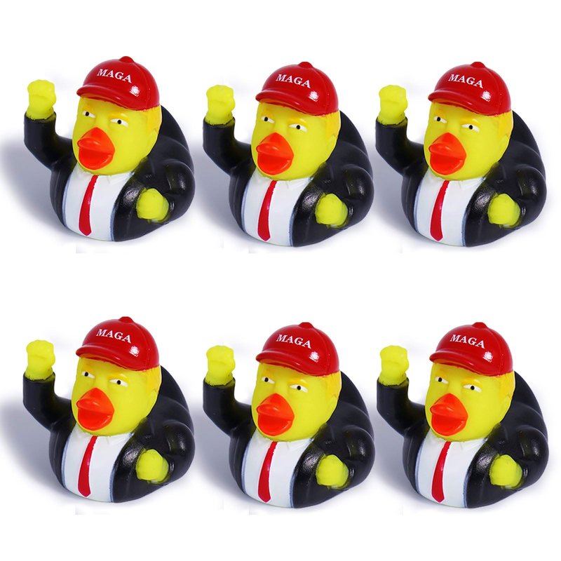 - Great Gift & Political Collectible: This 6-pack of Donald Trump rubber ducks makes a hilarious and quirky gift, ideal for Trump 2024 campaign memorabilia, 4th of July party favors, or as a unique white elephant gift. Whether for Trump supporters or those who appreciate political humor, these funny figurines will add a touch of fun to any gathering.