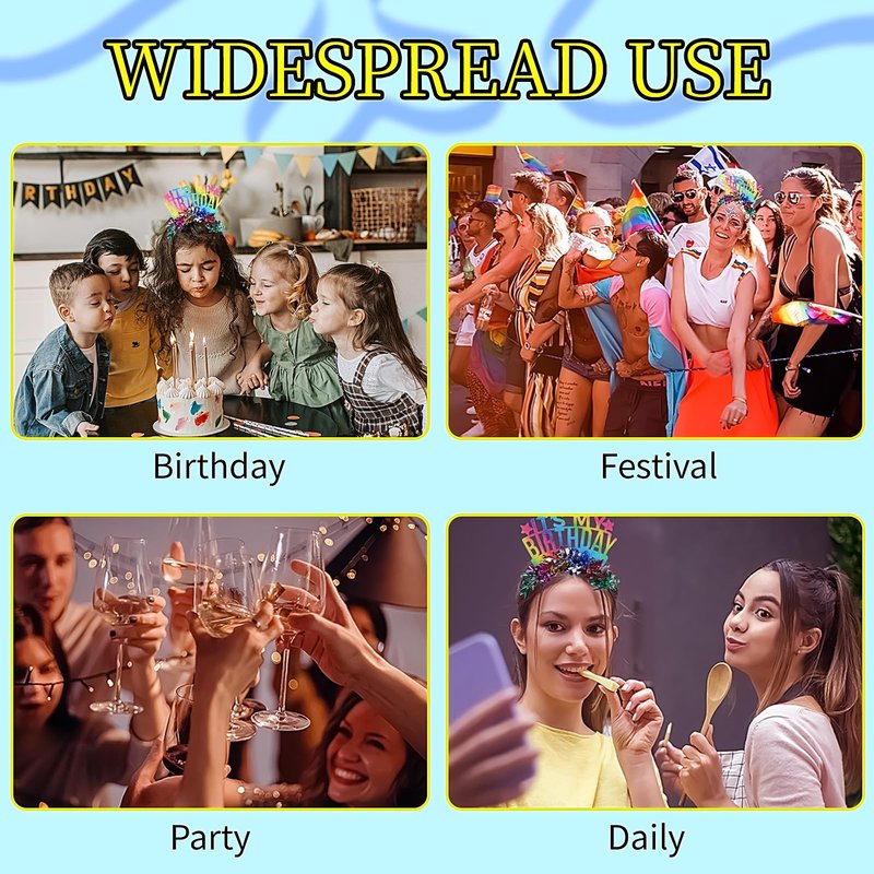 - đăHigh-Quality MaterialsăOur birthday headband is made of colorful glitter, felt cloth, and plastic. The decoration consists of glittering ribbons and the words"IT'S MY BIRTHDAY". The excellent materials make the headband very lightweight, allowing for long-time wearing. No matter how long you wear it, it won't get uncomfortable or slip off. It is easy to wear, portable, reusable, and a perfect gift for your birthday party!