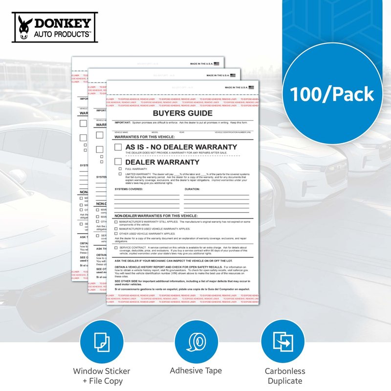 Donkey Auto Products 2-Part Buyers Guide Form - Adhesive Tape - English - As is - Warranty (100 per Pack)
