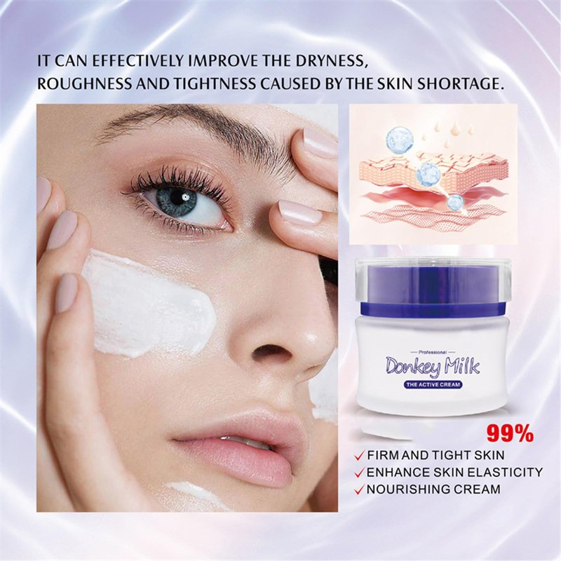 - Enhances Skin Elasticity: Regular use of this donkey milk cream for the face and skin helps improve skin elasticity, promoting a more youthful, plump, and firm appearance
