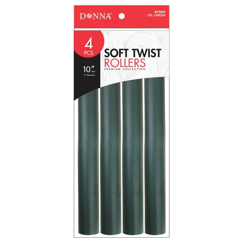 DONNA 10" Soft Twist Rollers Rollers Foam Hair Rollers Hair Curlers Hair Clips for Hairdressing Styling Heatless Hair Curler 1"(D) GREEN 4PCS