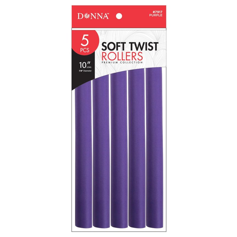 DONNA 10" Soft Twist Rollers Rollers Foam Hair Rollers Hair Curlers Hair Clips for Hairdressing Styling Heatless Hair Curler 7/8"(D) PURPLE 5PCS