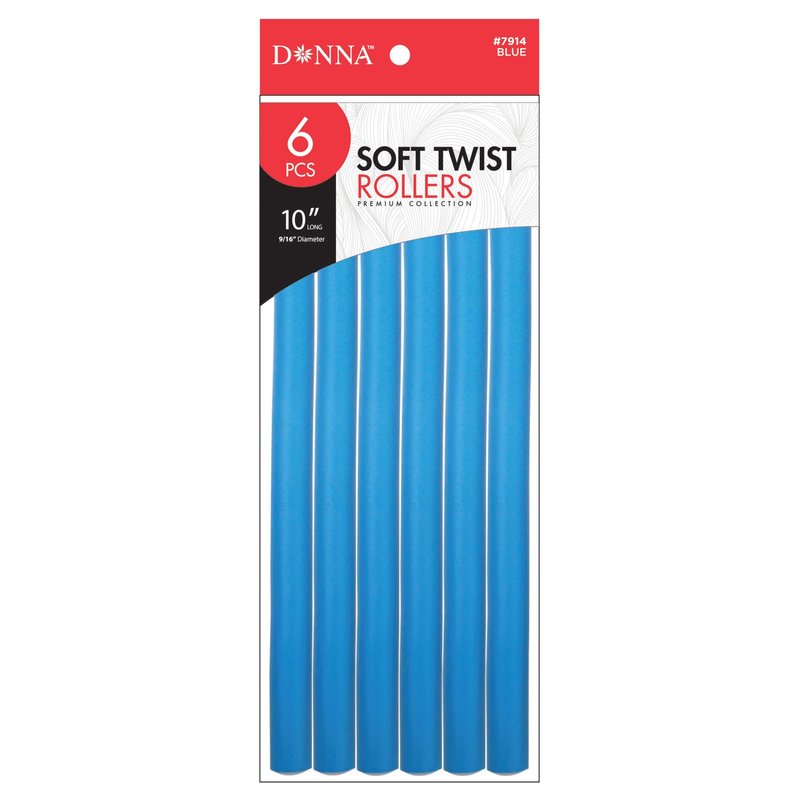 DONNA 10" Soft Twist Rollers Rollers Foam Hair Rollers Hair Curlers Hair Clips for Hairdressing Styling Heatless Hair Curler 9/16"(D) BLUE 6PCS