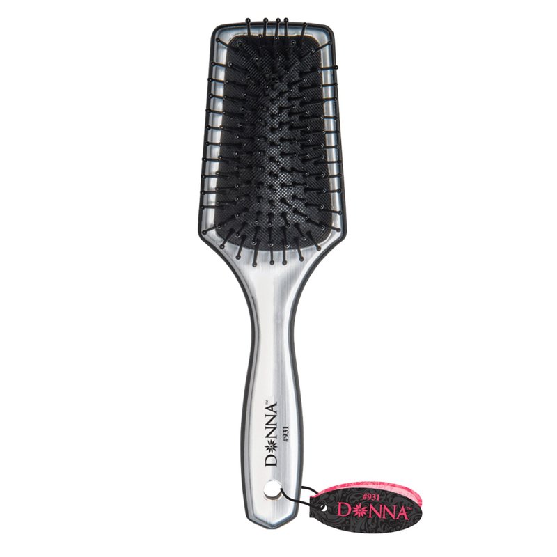 Donna Collection Small Metallic Silver Paddle Hair Brush, Black