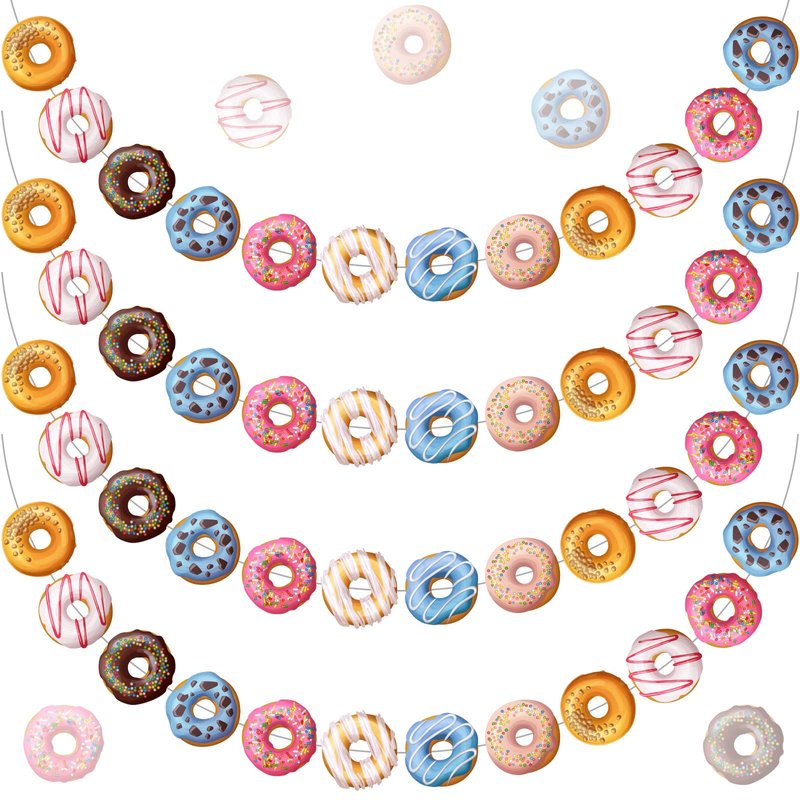 - What will get: there are 4 pieces of donuts banners in the package, each of which has 8 different delicious donuts with single-sided printing paper cards, very delicate and cute, enough quantity for you to decorate your party