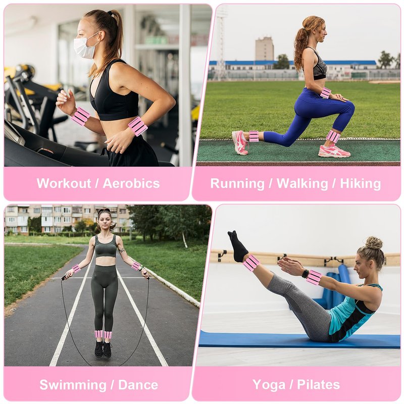 - Strength Training Wrist Ankle Weights: Wrist wights for women set of 2 make you workout Resistance Weights for Yoga, Pilates, Dance, Aerobics, hiking and Walking .Great weights to add a bit extra strength allow you to use in various activities, and Increasing your strength, endurance and muscle tone. Versatile and portable wrist weights is good for outdoor & indoor.