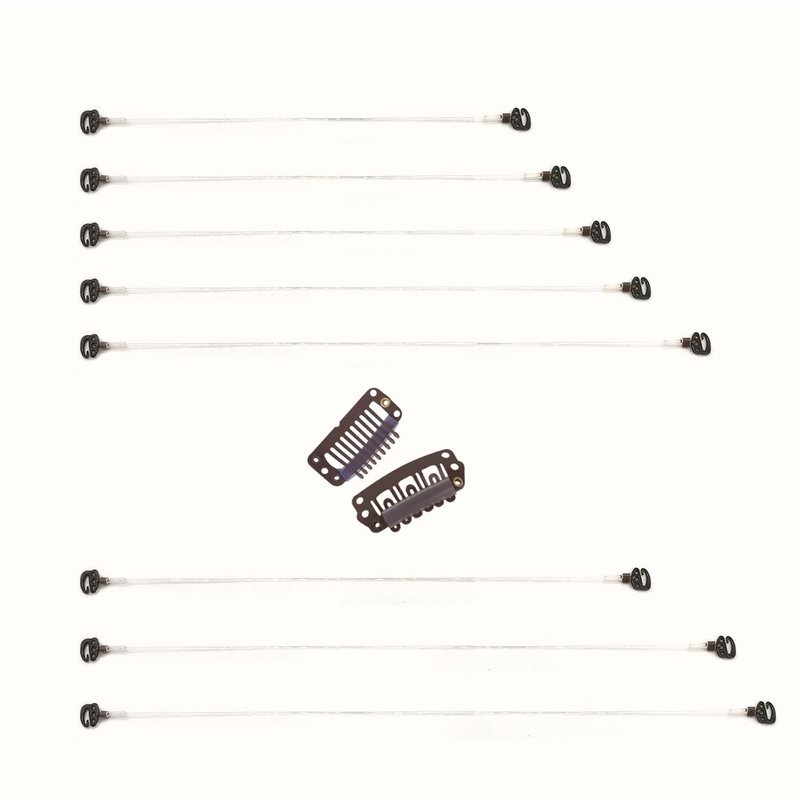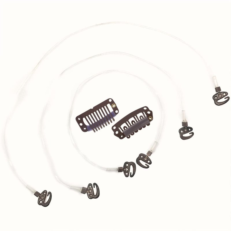 DOORES Brown Invisible Elastic Fish Line for Wire Hair Extensions 8pcs 18.5cm 24.5cm 30cm Secret Wire Extensions with 4 Stainless Steel Clips