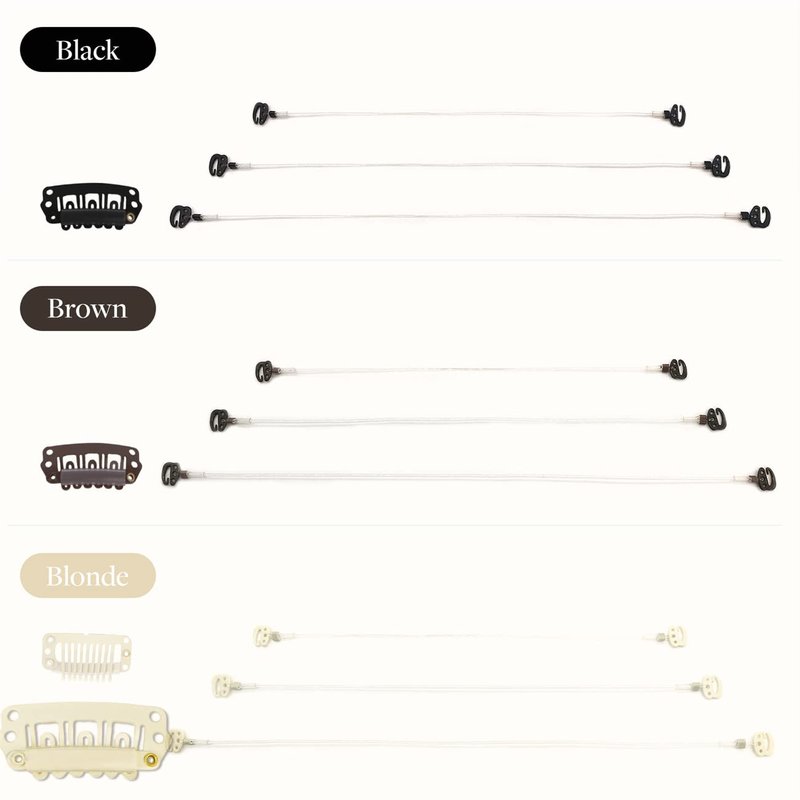 Brand storyDoores start with a heart-warming and touching story. Alice founded the doores hair team in order to help her mother who was suffering from the disease get rid of the troubles caused by hair loss. Since then, doores has always been committed to providing customers with the highest quality products and services.Product descriptionDoores replacement wire for wire hair extensions human hairSpecification: Wire*3 18.5cm, 20.5cm, 25.5cm;2 stainless steel clipsColor of hook and clips: black, blonde and brownMore hair extensions and hair extension accessories products, Please search “Doores hair extensions”.
