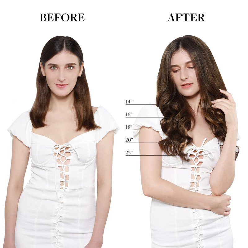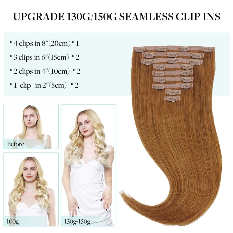 - 【Upgrade Hair Extensions Weight--130g/150g per Pack-Make a Full Head with 1 Set】 New upgrade specifications--14inch,16inch,18inch: 130g/pack. 20inch,22inch: 150g/pack. Don't worry about your hair being too thin and need to buy two packs, 1 pack of upgrade weight hair extensions can meet your needs.If you want to pursue a more perfect effect, we also recommend that you pair it with purchasing 110g seamless clip in hair extensions to create natural beauty.