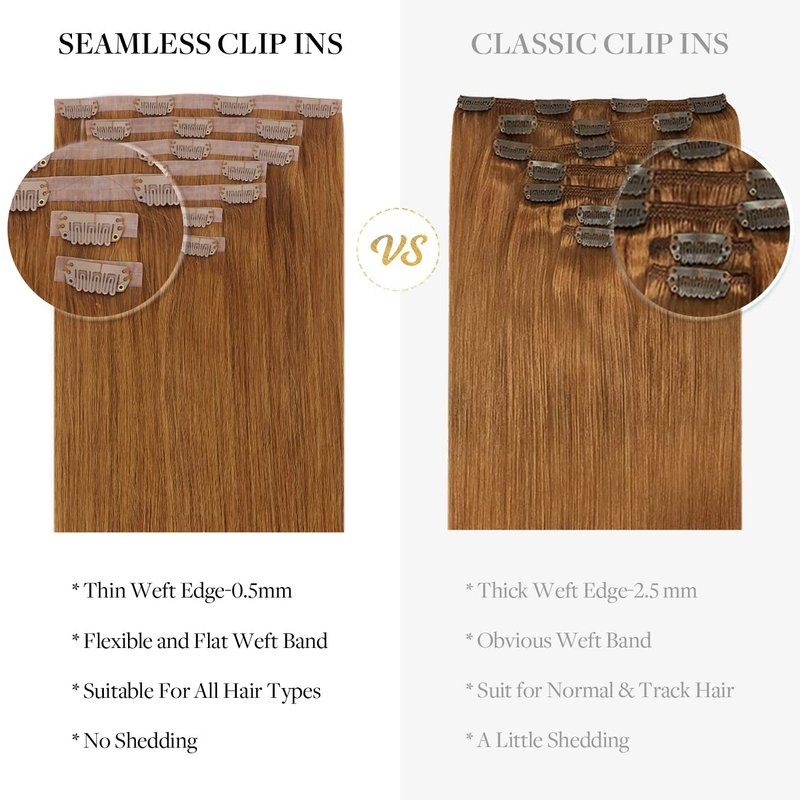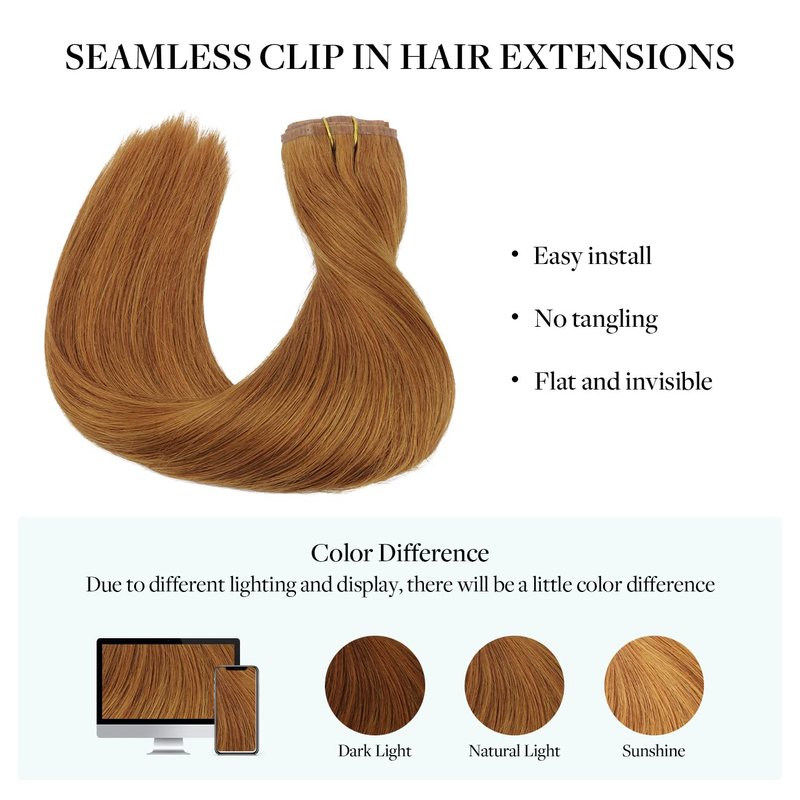 - 【5-10 Minutes to Install--Easy & Fast Create a Full Hairstyle Look Anytime】--Seamless clip in hair extensions is an easy and quick tool for adding volume and length. It only takes 5-10 minutes to put on and 3-5 minutes to remove. Compared with classic double weft clip hair, seamless clip in hair extensions is more suitable for people with thin hair. Please combine the wearing and styling tips recommended on our page for perfect color match and styling.