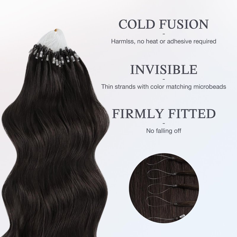 - Cold Fusion Installation: the application of micro link hair extensions requires no heat or glue, it can minimize hair damage. Extensions are easy to put on and take off. The beads also match the hair color to provide invisible wearing effect