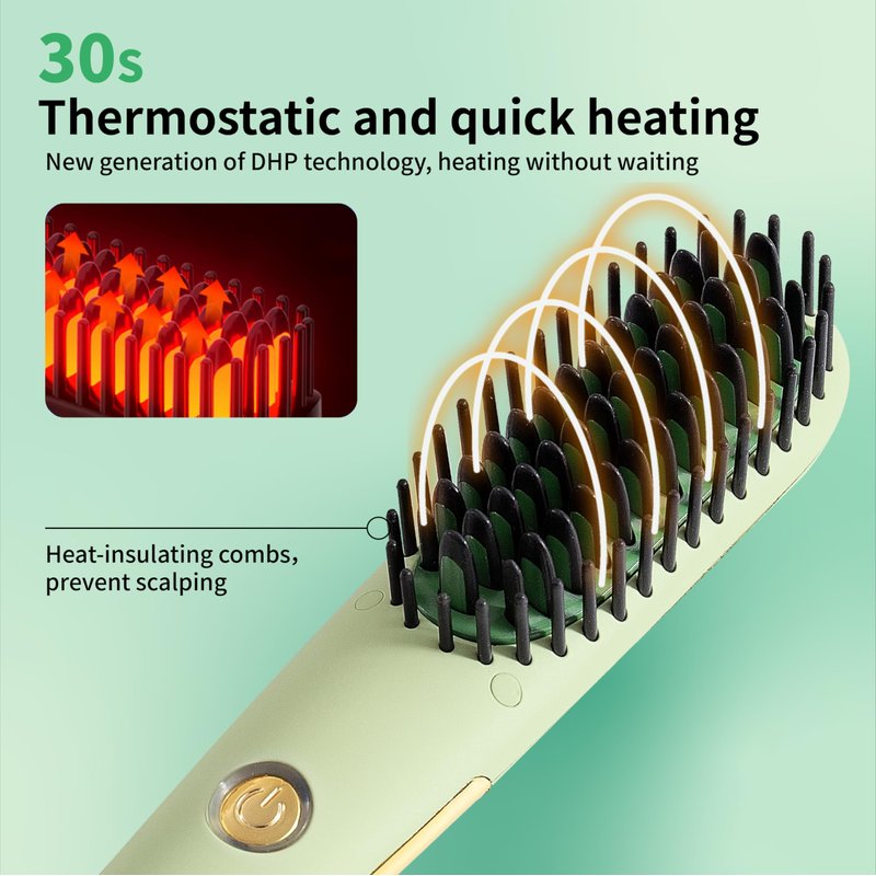 The Portable Hair Straightener Brush, the ultimate hair styling tool designed for convenience and efficiency. Say goodbye to frizzy, unruly hair and hello to sleek, smooth hair with this innovative cordless hair straightener brush. At the core of this device is its portability, lightweight design. Whether you're on the go or traveling, this portable hair straightener cordless allows you to style your hair effortlessly anytime, anywhere. Equipped with advanced ionic technology, this hair straightener brush effectively reduces frizz and static, leaving your hair silky and shiny. The keratin-coated bristles not only glide through your hair smoothly but also contribute to the overall health of your hair. Say goodbye to tugging and pulling – the anti-scald feature ensures a safe and comfortable styling experience. Whether you have straight, wavy, or curly hair, this versatile straightener is suitable for all hair types. Adjust the temperature settings to suit your hair texture and style preferences, and enjoy effortless styling in minutes. The different colors lights display allows for easy monitoring of the temperature, ensuring precise control over your styling process. Experience the convenience and performance of the Portable Hair Straightener Brush for yourself. Say hello to beautifully styled hair on the go – anytime, anywhere. Add this must-have hair styling tool to your beauty arsenal and unlock a world of styling possibilities. Revolutionize your hair styling routine with the Portable Hair Straightener Brush.