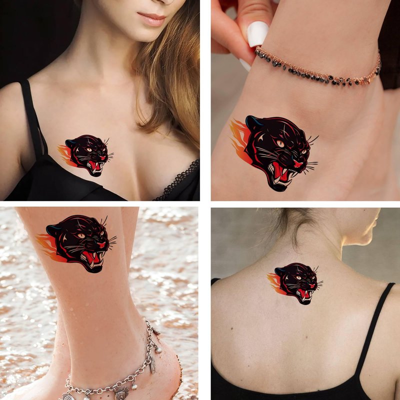 Dopetattoo 6 Sheets Fake Tattoos Set Illustration of a Black Panther with Angry Face Expression Temporary Tattoos suitable for Adult Women Men for Children Boys and Girls