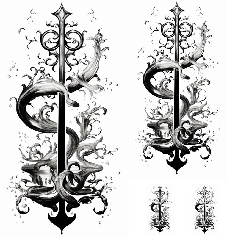 Dopetattoo 6 Sheets Temporary Fake Tattoos For Men Adults Trident of Poseidon Trident Ocean Waves Tatt Temporary Fake Tattoo For Women Neck Arm Chest For Woman 3.7 X 3.7 Inch