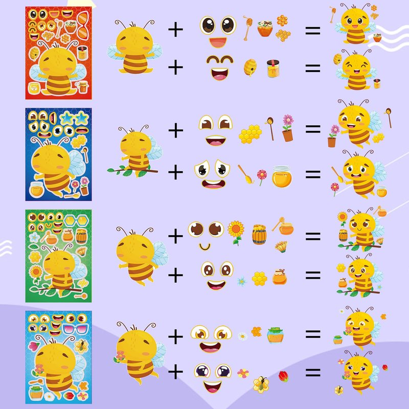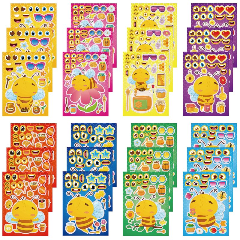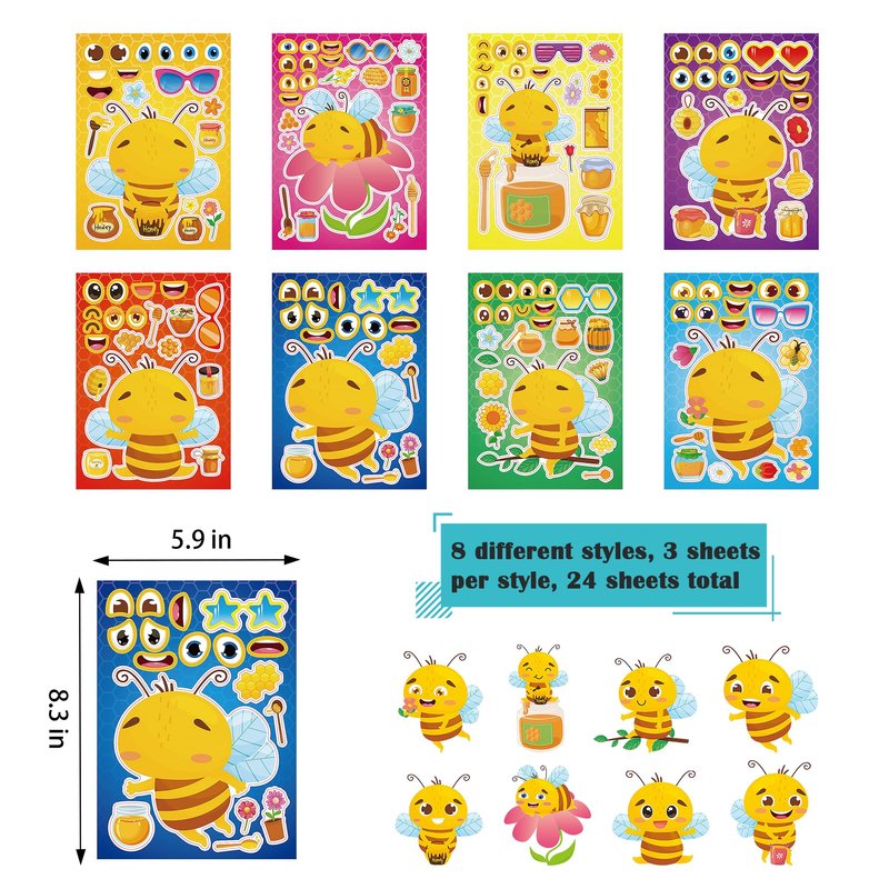 - Package Contents: You will receive 24 sheets of bee theme make-a-face stickers in 8 different styles, 3 of each style, delicate and cute, enough quantity and various designs can meet your use needs, your kids can mix and match according to their preferences.