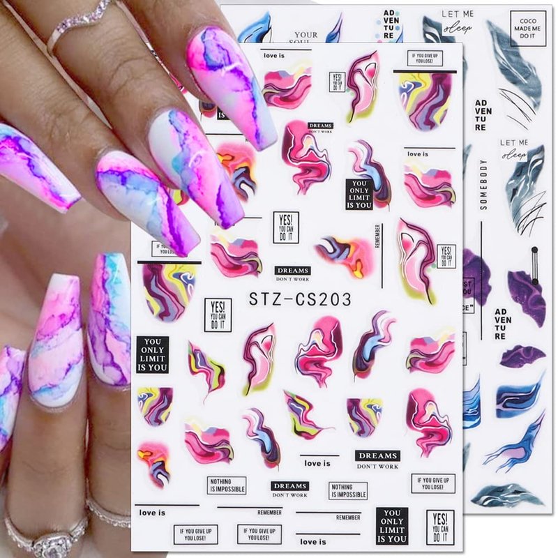 Colorful ink blooming marble nail stickers.