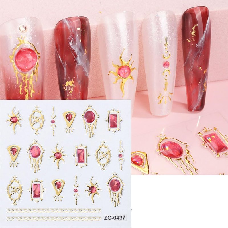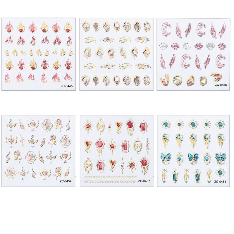 Pattern:Embossed Stereoscopic Nail Stickers heart, sun,Bow,Feather,Flame Pattern and so on Pattern graphics.(As the picture shows)