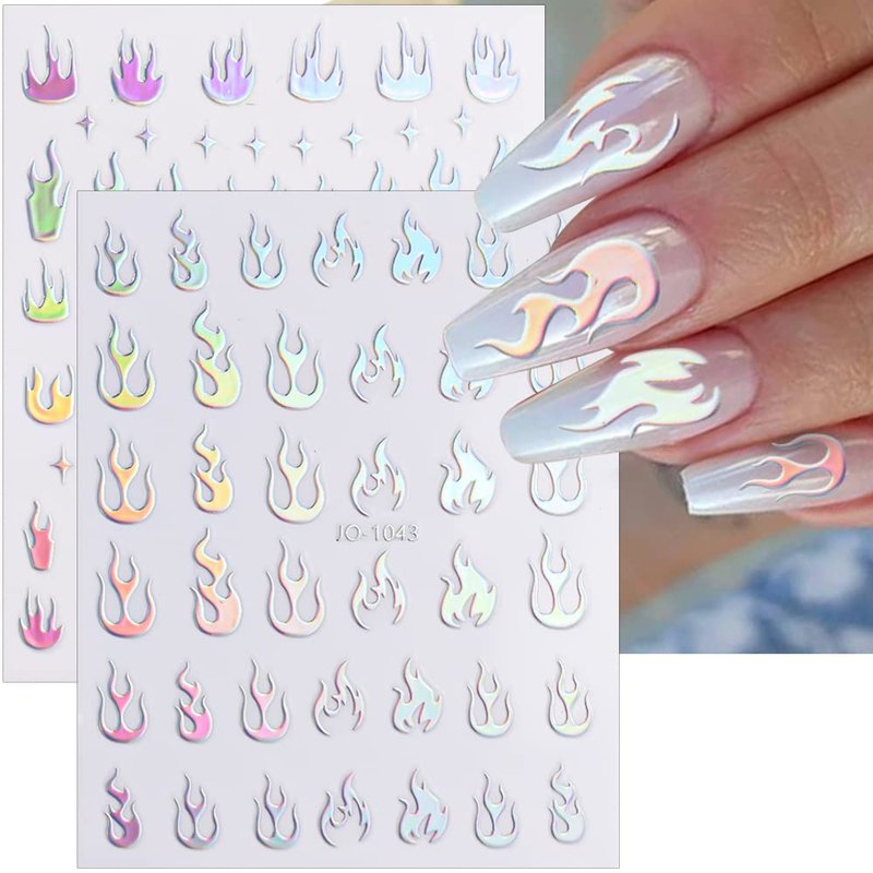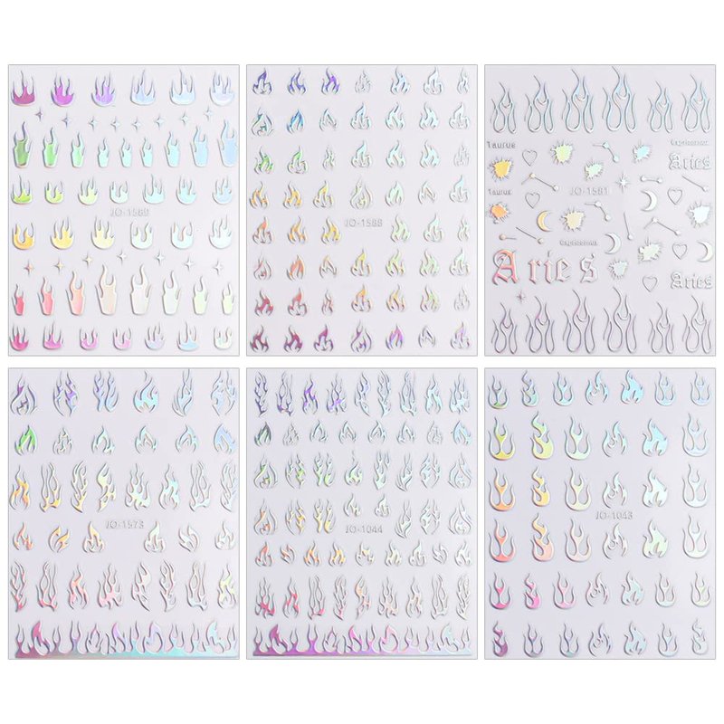 - DESIGN / EFFECT--There are many different design fire flame patterns for you to choose, our nail stickers will reflect different aurora effects under different lights, with strong luster, shiny, dazzling, looks unique and beautiful.