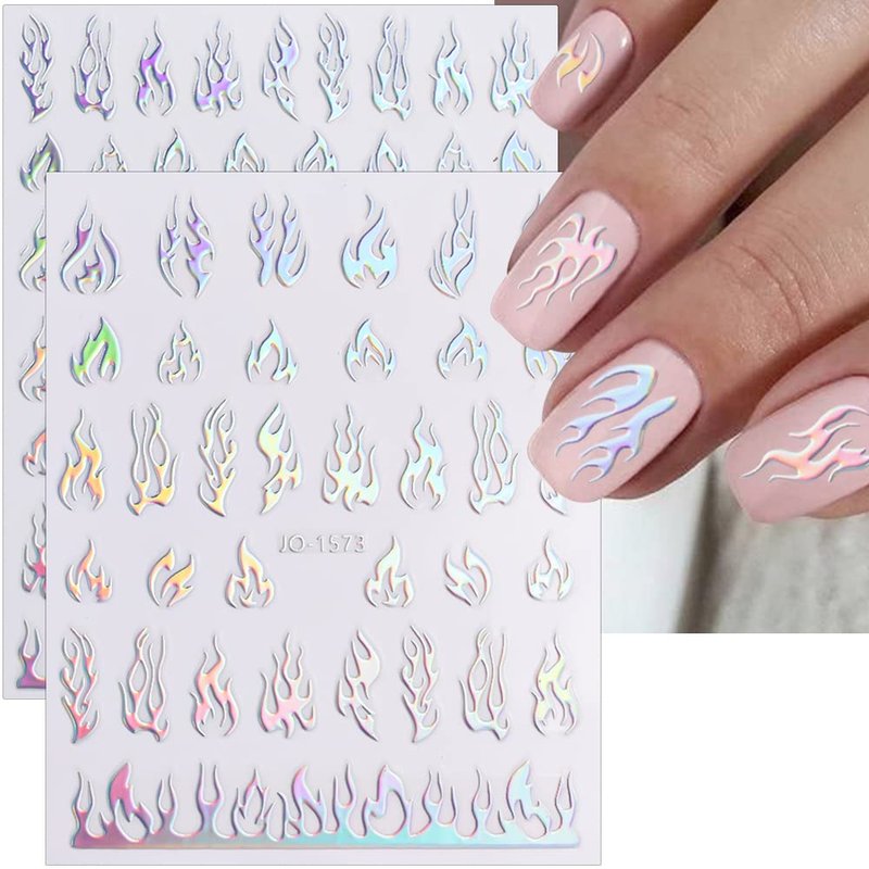 - PACKAGE CONTENT--You will get 6 sheets laser silver nail stickers, 3D holographic flame nail art decals for nail art design decoration, perfect for home use and nail salon.