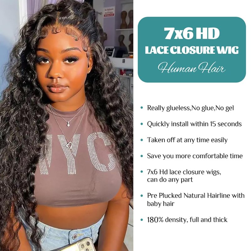 - Color: 7x6 Wear and Go Glueless Deep Wave Wigs
