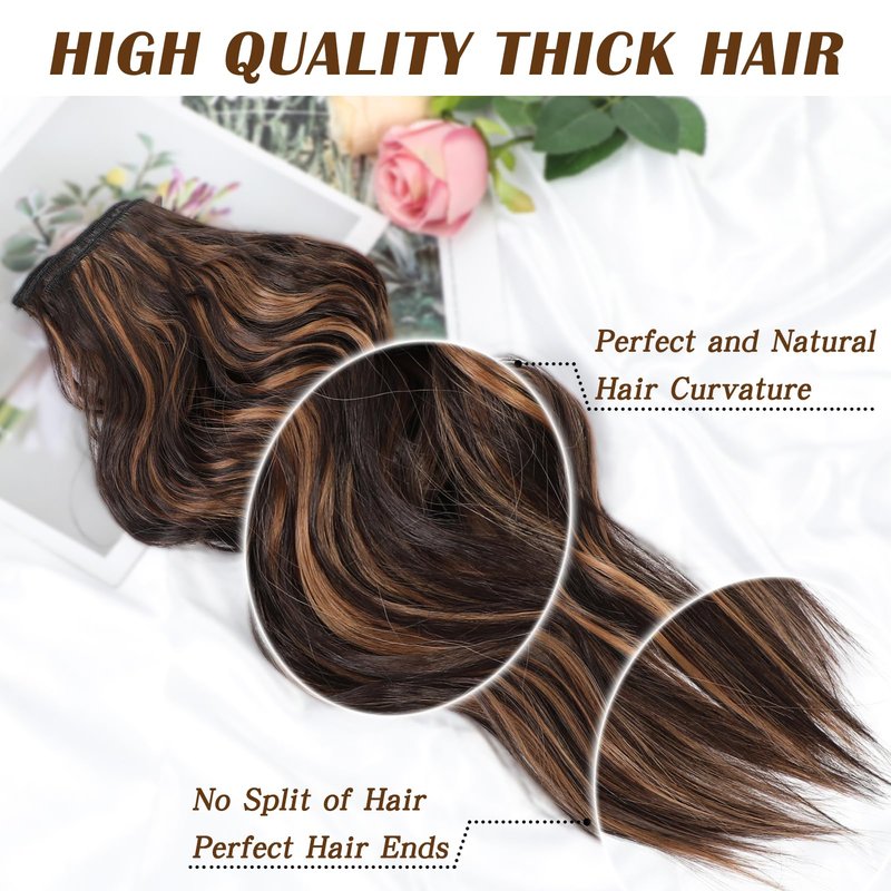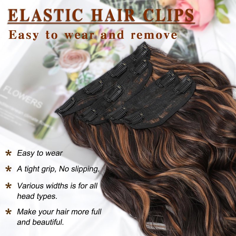 Dorsanee Clip in Hair Extensions, Dark Brown with Chocolate Brown Highlight Hair Extensions, 20 Inch 4pcs Long Wavy Synthetic Hair Extensions Double Weft Hairpieces for Women