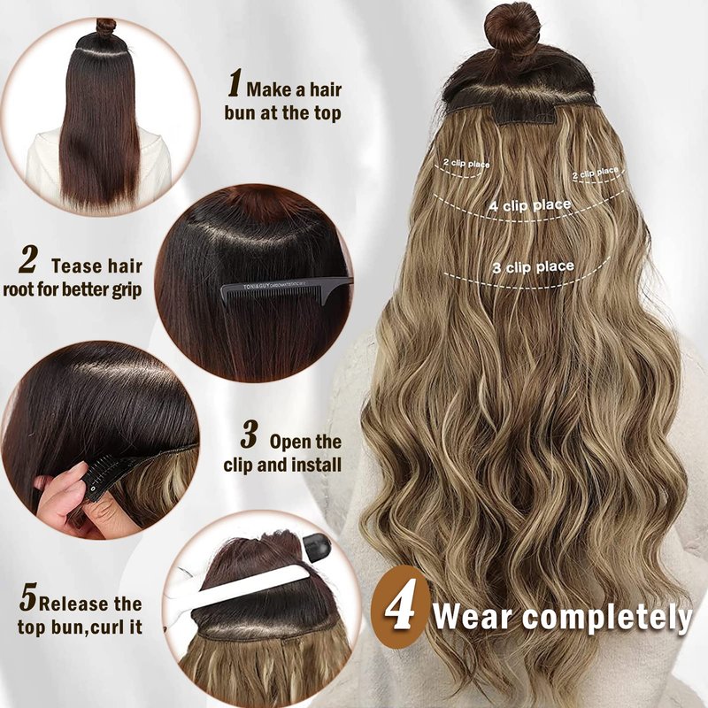 - Easy to Use: Compared with traditional hair extensions, this 4pcs clip in hair extensions can provide you with more volume with no glue, no tape, no pressure, no damage to your hair and scalp.Just with BB clips, you can easy to wear and put off with simple steps in a few minutes.It can blend well with your own hair, wearing it, you will get many compliments.