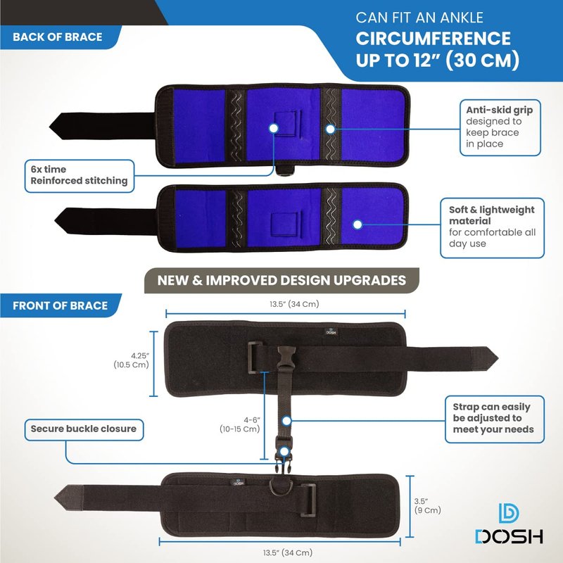 The DOSH AFO foot drop Brace Features a New and Improved Upgraded Secure Buckle Closure that is designed to keep your foot in place all day. All Drop Foot Braces are not the same, you no longer have to deal with flimsy hook-and loop fasteners that lose strength quickly and constantly need to be replaced. The DOSH brace has an attached adjustable strap, which allows you to customize the brace to provide you with as much or as little tension as desired. Be sure to receive maximum lift place under bottom three shoe laces. It is designed to be able to provide a maximum and secure upward lift to your foot when walking to help restore a more natural gait. It can also be worn as an AFO night time brace to maintain foot in a neutral position for those who have drop foot/foot drop or are experiencing Plantar Fasciitis or Achilles Tendonitis.