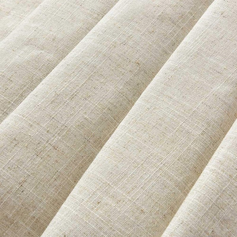 - Soft, linen and cotton blend fabric curtain with a farm house,shabby chic or country style design for your bathroom. Beige and Grey stripe shower curtain with pleats and wooden button embellishments to enhance your space.