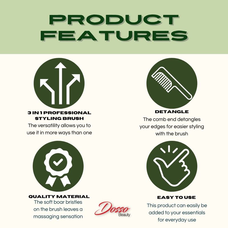 - 3-in-1 Styling Brush: The Dosso Beauty metal rat tail combs are a versatile tool that offers three functions in one. Whether you need to detangle, sculpt baby hairs, or achieve precise styling and parting, this brush covers you.