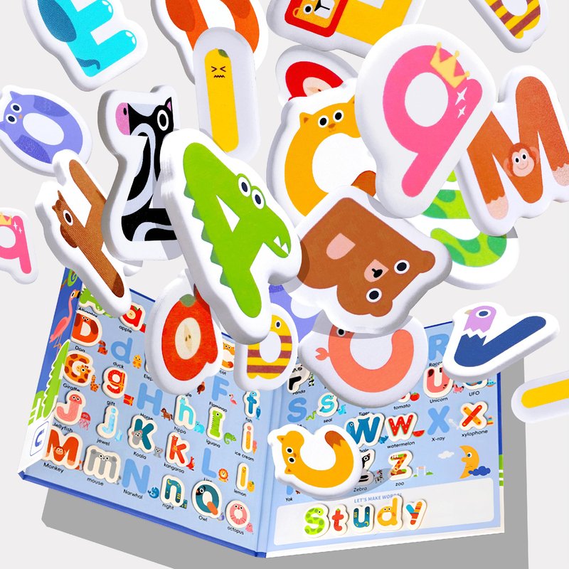 This is a fun and educational playset for kids. It contains magnetic cards with 26 letter shapes designed with corresponding animals and words for each letter shape. Suitable for the fridge or any magnetic surface. These magnets make spelling and learning fun and engaging, the design combines education with entertainment and is suitable for children from 3 years old.
