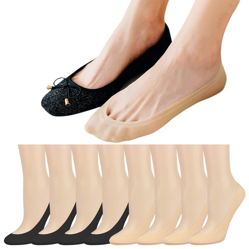 Double Couple 8 Pairs No Show Socks Women Low Cut Socks for Flats Non Slip Thin Liner Socks (4 Black & 4 Nude)