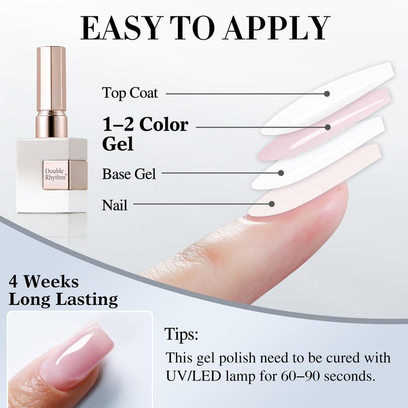 Double Rhythm 15ML Gel Polish Jelly Sheer Pastel Light Milky Color 1 PC 0.53 OZ Bottle Nail Polish Art Salon at Home for Women Girls (Violet Pink-B-A1314)