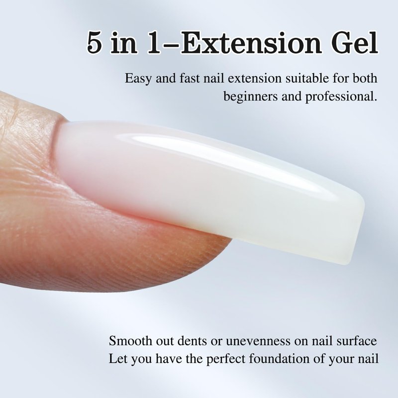 Double Rhythm 5 in 1 Milky Whtie Nail Gel, Nail Strengthener Gel for Nail Thickening Extension Hard Glue Led UV Lamp