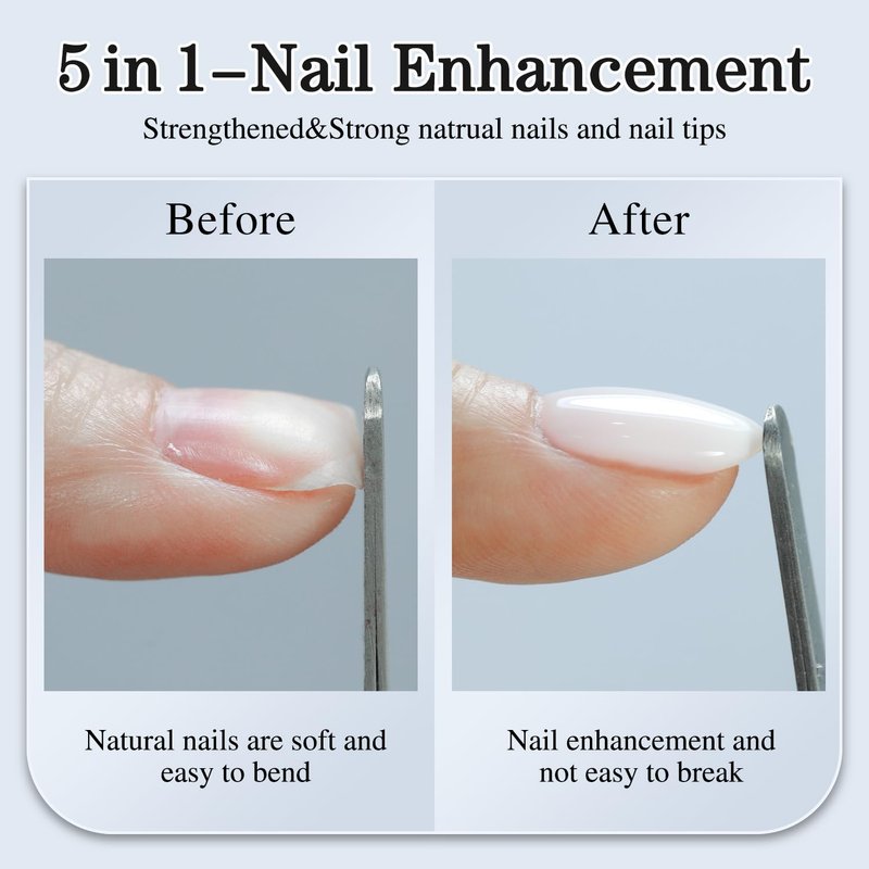 Double Rhythm 5 in 1 Milky Whtie Gel Nail Polish, Nail Strengthener Gel in a Bottle for Nail Thickening Extension Hard Glue Led UV Lamp (A-8 in 1-02)