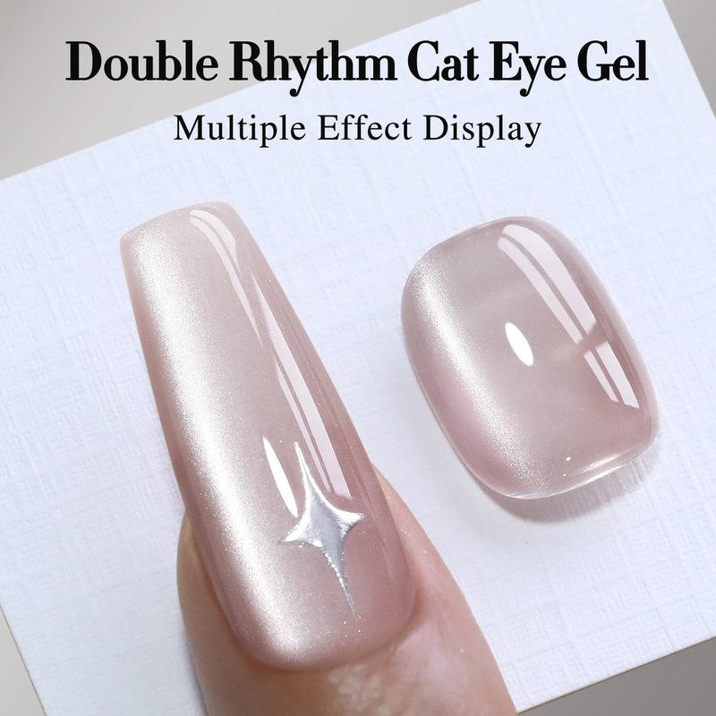 - Cat Eye Gel Nail Polish : Double Rhythm cat eye gel nail polish kit includes 1 color 15ml / 0.5 fl.oz gel nail polish. The cat eye gel can be combined with different bacse colors arbitrarily, you can get different colors nail art.You can use different base coat to creat different sytles.