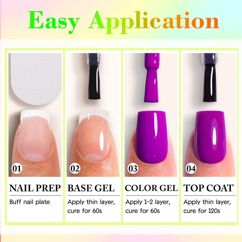 - Easy Application for Beginner :This translucent clear nail polish gel set need to be cured under LED nail lamp. These need to be cured under UV or LED Lamp for 60-120s. Please shake the bottle or warm it with hot water before use especailly in cold weather, to acheive a better effect.