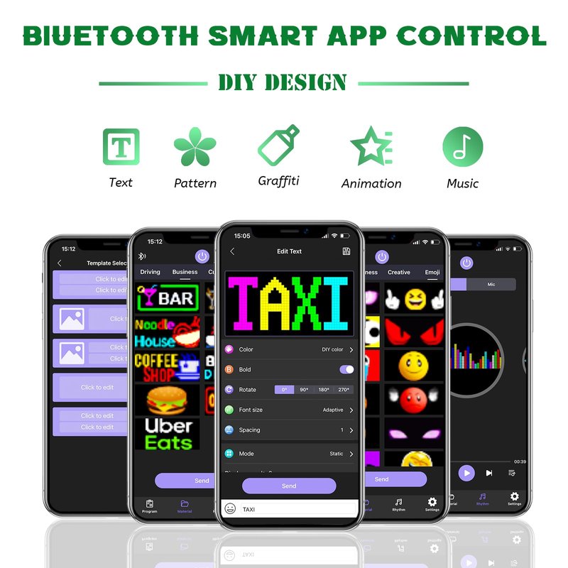- 【Bluetooth Smart App Control】Download the application (CoolLED1248), connect to the led screen via Bluetooth,The app built in a lot of interesting patterns and animations,can easily DIY design text, patterns, animations,And the LED sign is equipped with a remote control,can also choose a variety of display mode and you can also adjust the brightness and speed.The APP supports connecting multiple led display at the same time.