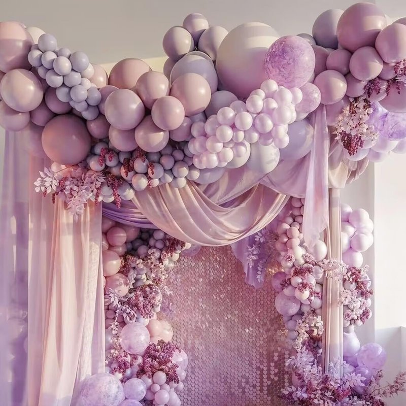 - 【Purple Balloon Garland Easy to Assemble】Our double stuffed purple balloon arch kits are chic, fun, and surprisingly easy to put together - no experience required! Inflate all the balloons first, then prepare the balloon decoration chain,Put the balloons into the hole of the balloon trim. Different size and different color balloons can be put on both side hole.You can also choose several colors to mix and match with an elegant balloon garland