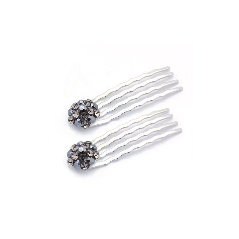 DoubleAccent Hair Jewelry Small Crystal Cluster Mini Bridal Hair Comb Set of Two, Black