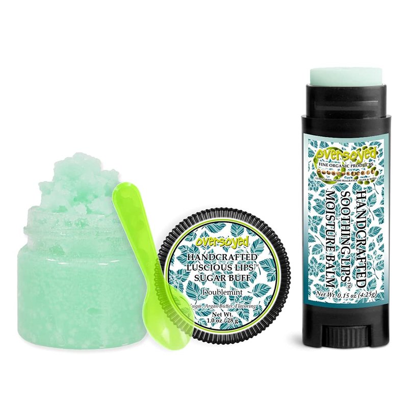 Doublemint Soothing & Luscious Lips by OverSoyed Exfoliator & Chapped Lip Repair Lip Care Combo | Artisan Handcrafted to Order Refreshing Icy Spearmint Sweet Peppermint Flavored Exfoliating Sugar Lip Scrub & Lip Moisturizer Balm Gift Set