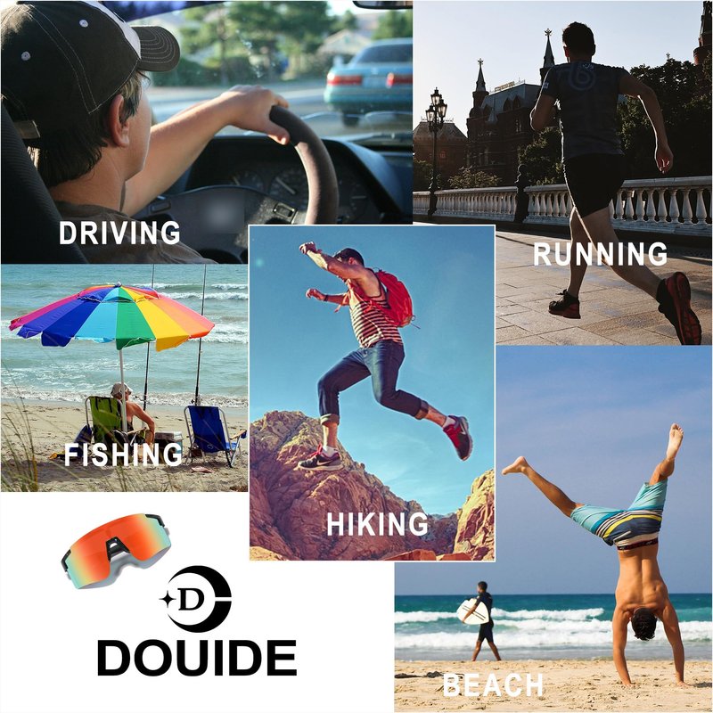 Douide sunglasses reduce glare by 95% and reduce the brightness of object surfaces to enhance contrast and improve clarity, keeping your eyes comfortable.