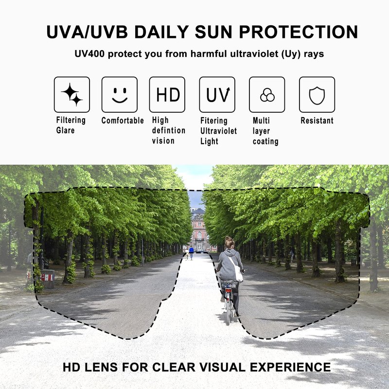 - Superior UV400 Protection: Shields your eyes from harmful UV rays, reducing fatigue and eliminating glare for enhanced visual clarity.