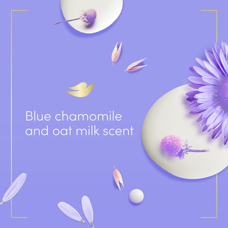 - Dove Anti-Stress Cream Bar cleanser with blue chamomile and oat milk scent