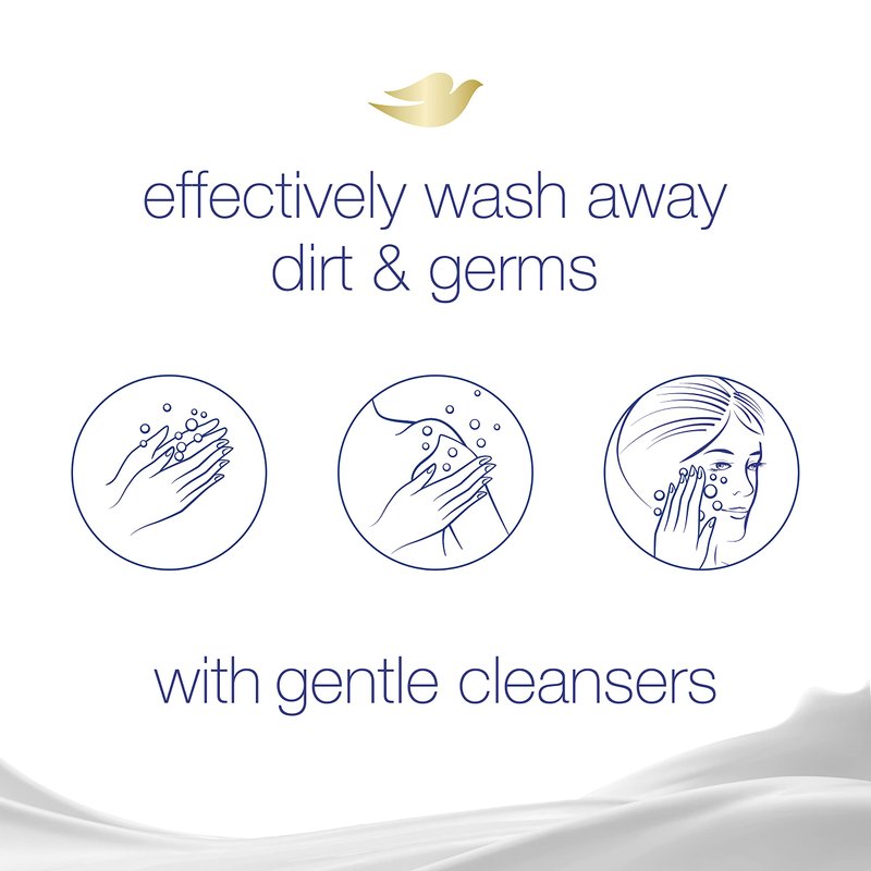 - EFFECTIVE CLEANSER. Gently wash away dirt and germs, for use every day on body, face, and hands. This Dove Beauty Bar creates luxurious lather and won’t dry your skin like ordinary bar soaps