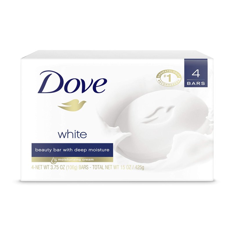 Dove Beauty Bar More Moisturizing than Bar Soap White Effectively Washes Away Bacteria, Nourishes Your Skin 3.75 oz 4 Bars