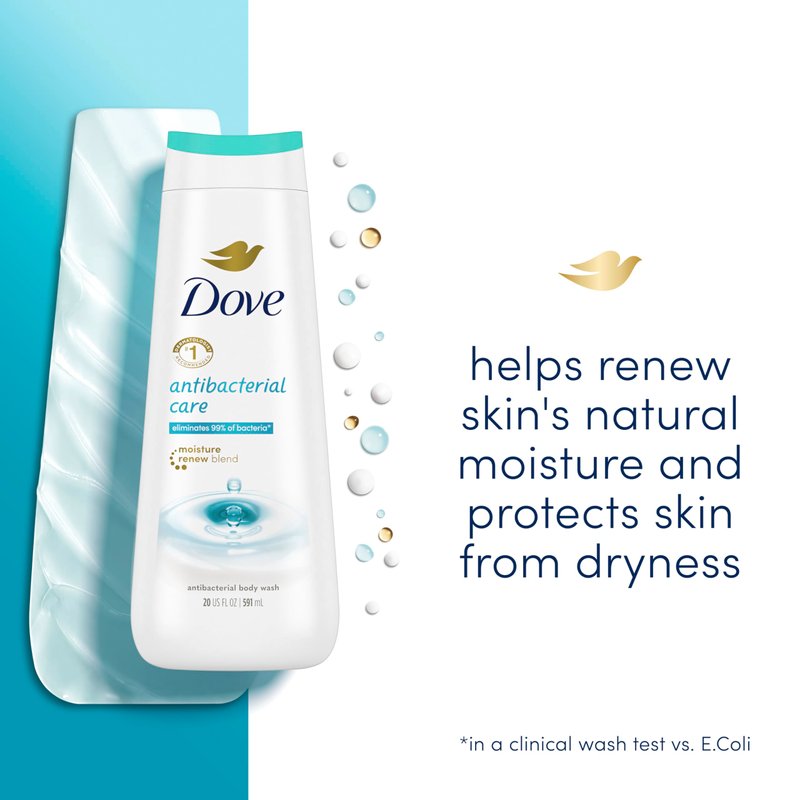 - Dove Care & Protect Antibacterial Body Wash eliminates 99% of bacteria*